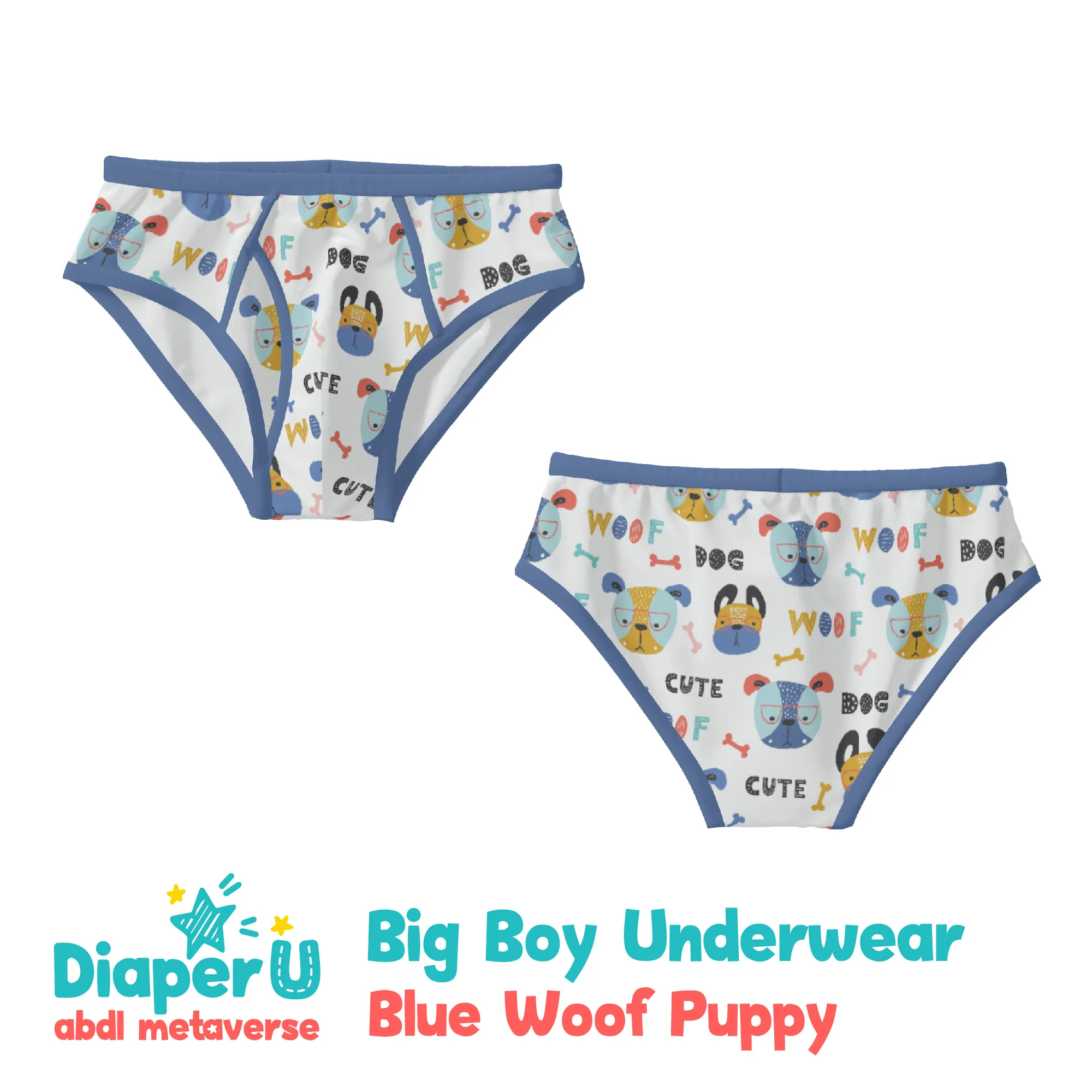 ABDL Big Boy Underwear - Blue Woof Puppy