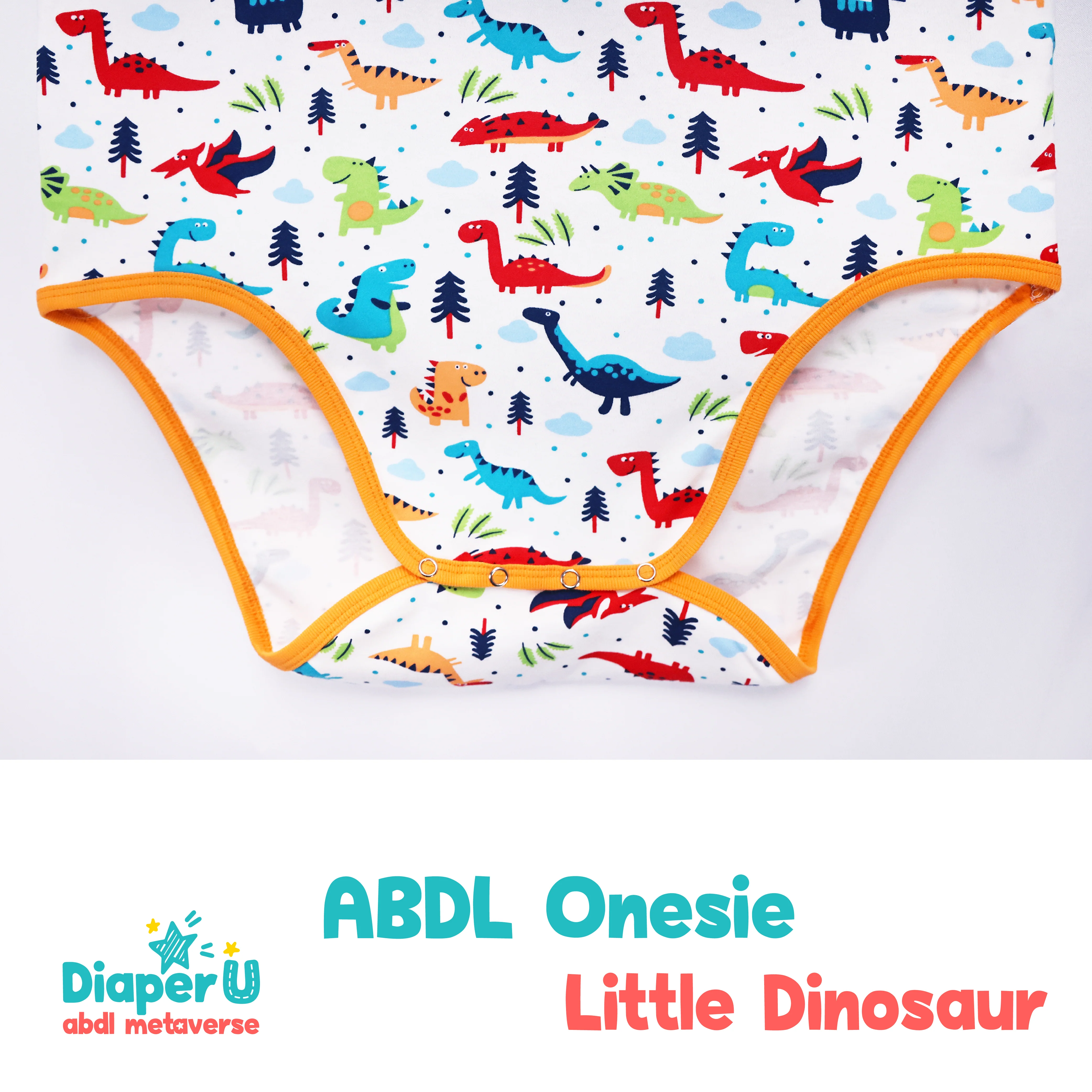 ABDL Onesie - Little Dinosaur. Made of baby clothing materials: 100% Cotton, soft and comfortable; moderate length; Perfect for daily wear.